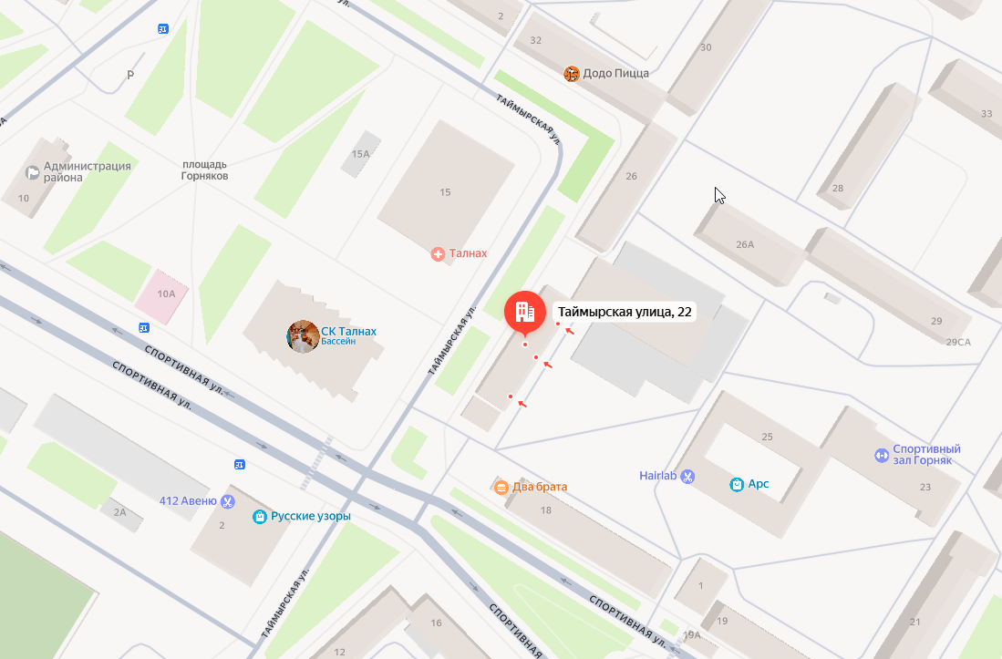 Адрес: ул. Таймырская д. 22 (р-н Талнах)